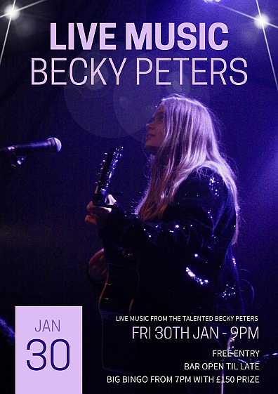 followed by Live Music from the fabulous Becky Peters from 9pm,